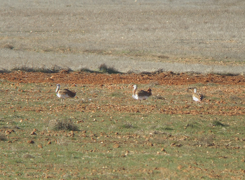 The day was drawing to a close so we headed back to one of the local villages for a coffee prior to the drive back to Valencia. We were pleased with the day but had failed to see one of the region´s iconic species – the Great Bustard. As we drove along the arrow-straight road, we finally found them in fields quite close-by. First a small group of three males then as we scanned the surroundings we counted over fourteen of these impressive and majestic birds. We stood by the road for a good fifteen minutes enjoying great views.